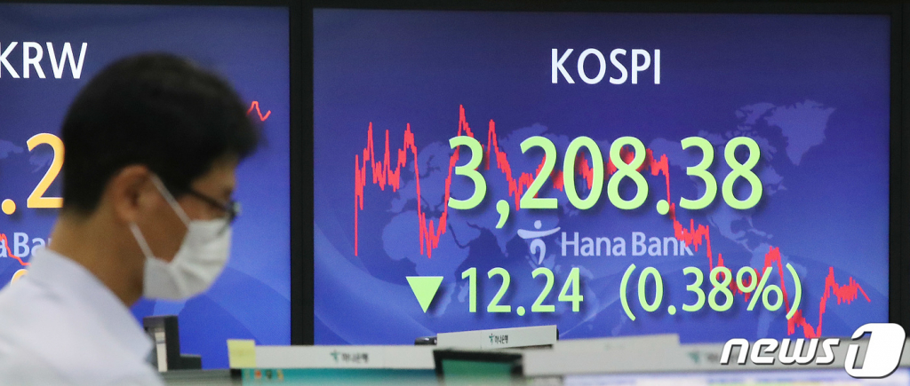 코스피는 전날보다 12.24포인트(0.38%) 내린 3208.38로 거래를 마쳤다. 장 초반 상승 출발했지만 오후 들어 외국인 매도세가 거세지면서 하락 전환했다.