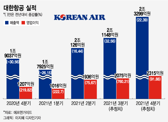 방민진 유진투자증권 연구원은 "대한항공이 팬데믹(세계적 대유행)을 겪는 동안 오히려 재무구조 개선을 이룬 거의 유일한 항공사"라고 평가했다.