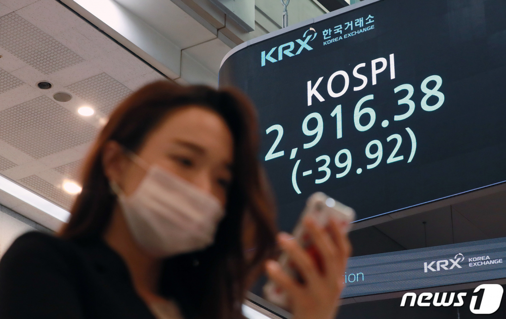 이날 코스피는 전 거래일(2956.30)보다 39.92포인트(1.35%) 내린 2916.38에 마감했다. 지수는 0.21% 내린 2950.22에 출발해 장중 1.85% 하락한 2901.51을 기록했다. 이후 점차 낙폭을 만회하며 2910선에서 주로 움직였다.