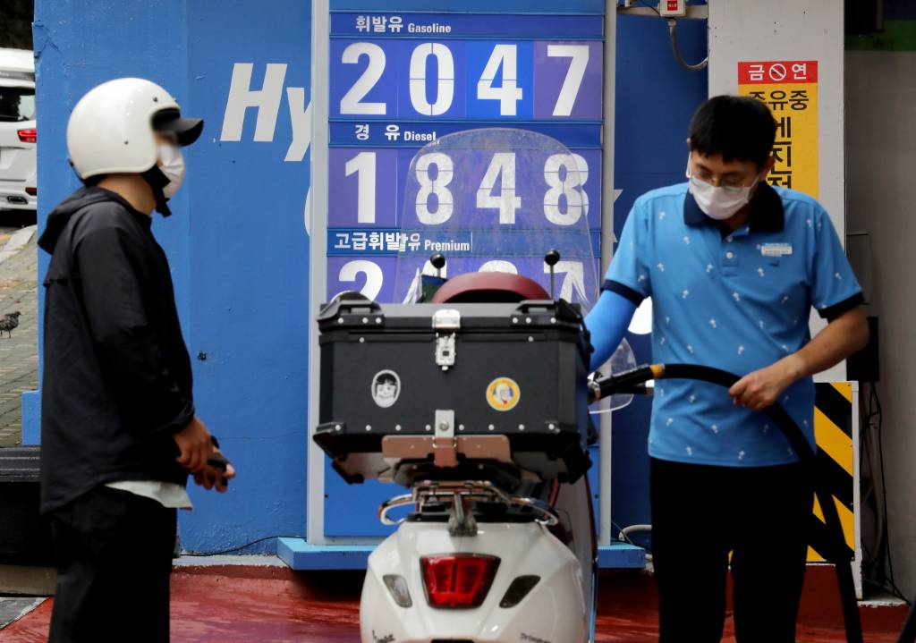 ![[서울=뉴시스] 김병문 기자 = 미국 서부텍사스산 원유가 4거래일 연속 상승하며 80달러 돌파를 앞둔 6일 오후 서울 시내 한 주유소에서 직원이 주유를 하고 있다. 5일(현지시간) 뉴욕상업거래소에서 11월물 미국 서부텍사스산 원유(WTI)는 전 거래일 대비 1.31달러 오른 배럴당 78.93달러에 마감했다. 2021.10.06.](https://thumb.mt.co.kr/cdn-cgi/image/f=avif/21/2021/10/2021101311082551962_1.jpg)