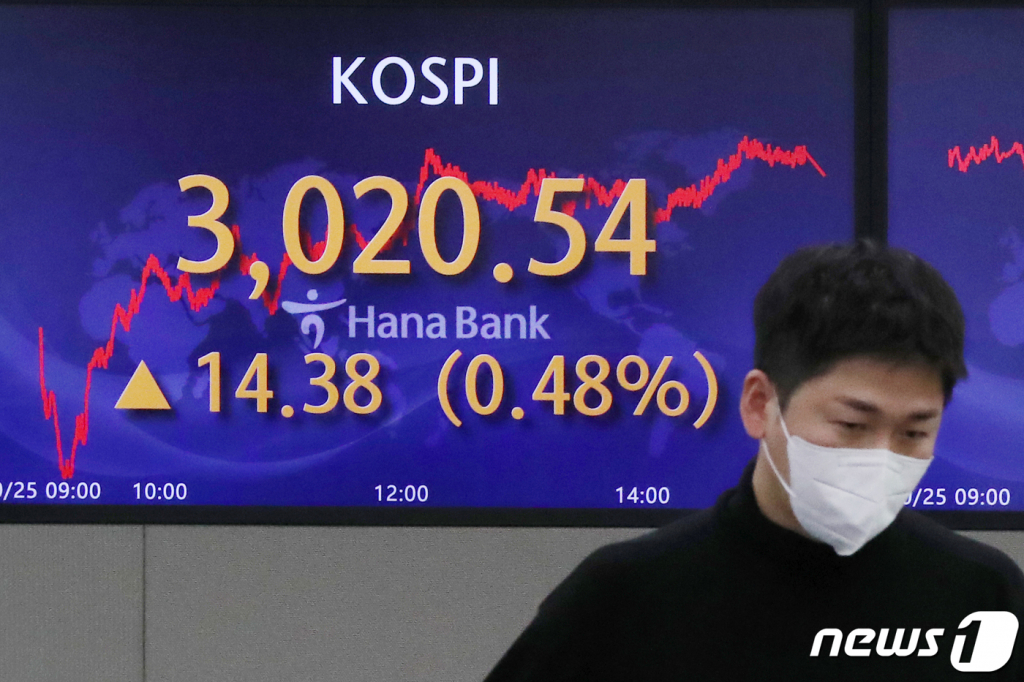 25일 코스피가 장 초반 부진을 딛고 3020선을 회복했다. 기관이 2500억원 이상 순매수에 나서면서 증시를 지지했다. 다음 달부터 '위드 코로나' 전환에 따른 기대감에 투자심리도 일부 개선된 것으로 보인다.
