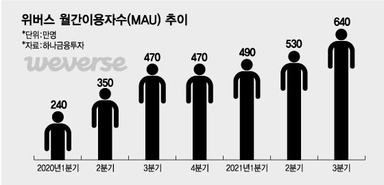 올해 초 위버스컴퍼니는 구주매각과 제3자 배정 유상증자를 통해 네이버의 투자를 유치했다. 또 위버스와 네이버 V-라이브를 통합한 플랫폼을 내년 상반기에 내놓을 예정이다.