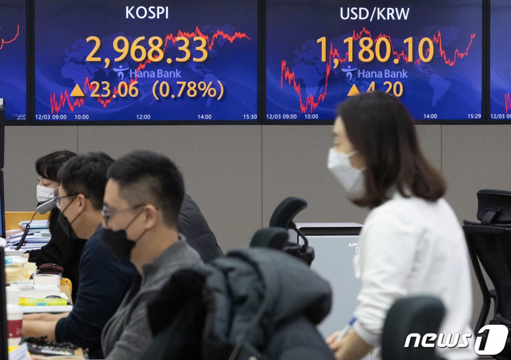코로나19(COVID-19) 변이 '오미크론'으로 급락했던 코스피가 사흘 연속 상승하면서 2960선을 회복했다. 미국 증시도 반등에 성공하는 등 오미크론으로 인해 나빠졌던 투자심리가 한층 개선된 것으로 풀이된다.