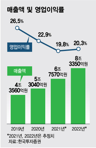 한국투자증권(목표주가 60만원)을 비롯한 메리츠증권(59만원), 신영증권(58만원), IBK투자증권(56만원), 하나금융투자(55만원), KB증권(55만원) NH투자증권(55만원)은 목표주가를 유지했다.