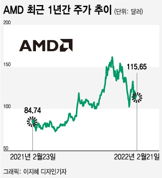 한편, AMD는 올들어 20% 가량 하락했다. 그럼에도 지난 1년간 주가 상승률은 35%에 달한다.