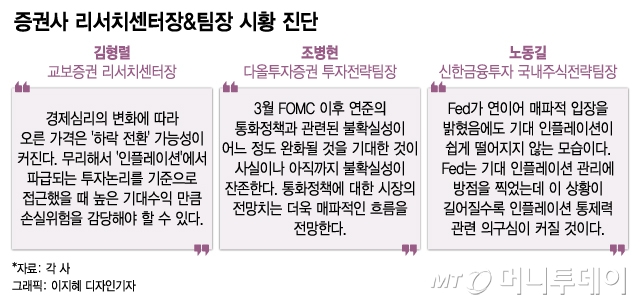 단기적으로는 5월 FOMC(미국 연방공개시장위원회) 회의에서의 빅스텝(기준금리 0.5%포인트 인상) 가능성에 눈길이 쏠린다. 증권가에서는 금리 인상 영향은 선반영됐다는 진단이 나온다. 다만 지수 상승까지는 시간이 더 필요하다는 전망이 우세하다.