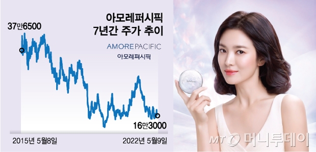 하지만 그것도 옛말, 세계 최대 화장품 격전지 중국에서 K뷰티는 샌드위치 신세가 됐다. 랑콤, 에스티로더, 시세이도 등 글로벌 명품화장품과 연 100% 성장률을 자랑하는 중국 C뷰티가 동시에 K뷰티를 위협하고 있다. 10배 올랐던 '꿈의 주식' 아모레퍼시픽(134,300원 ▼8,300 -5.82%) 주가는 현재 2015년 대비 1/3토막 났다.