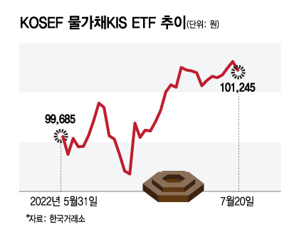 지난 5월31일 코스피 시장에 상장한 'KOSEF 물가채KIS(113,530원 ▲780 +0.69%)' ETF는 국내 최초이자 유일의 물가채 ETF다. 물가채는 소비자물가 상승률에 연동돼 원금이 변하는 채권을 말한다. 이자는 고정이지만 소비자물가지수가 상승하면 원금도 증가한다. 사실상 이자 상승 효과를 볼 수 있다.