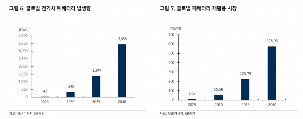 폐배터리 리사이클링 시장 개화에 주목한다. 코스모화학의 리사이클링 사업은 폐배터리로부터 니켈, 코발트 등을 추출해 자회사인 코스모신소재향으로 공급하는 구조다.