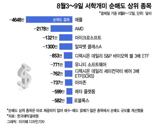 서학개미들은 S&P500지수가 4000선을 회복하며 4.3% 올랐던 직전 5거래일(7/27~8/2) 동안에는 미국 증시에서 3억3883만달러의 역대급 순매도를 보였다.