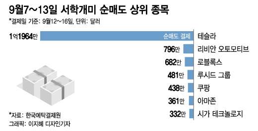 다만 순매도 규모는 테슬라 외엔 모두 1000만달러에도 못 미치는 미미한 수준이었다.