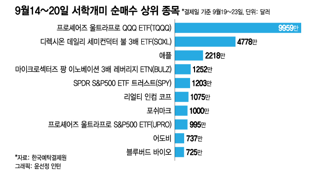 반면 서학개미들은 기술주 상승시 3배 수익을 얻는 레버리지 ETF를 대규모 매수했다.