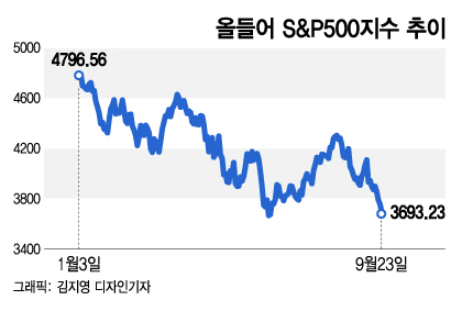 이 기간은 지난 13일 8월 소비자 물가상승률이 예상보다 높게 발표돼 투자 심리가 크게 악화된 다음날부터 지난 21일 FOMC(연방공개시장위원회)의 금리 결정 전날까지다. 이 기간 동안 S&P500지수는 1.9% 하락했다.