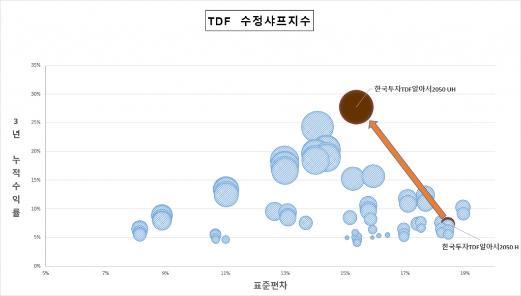 이는 순자산 100억원 이상, 운용 기간 3년 이상인 국내 TDF 141종 중 가장 높은 성과다. 1년 수익률은 -7.32%, 2년 수익률은 15.57%다.