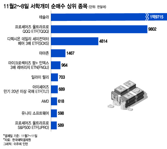 한편, 서학개미들은 지난달 실적 발표 후 급락세를 계속해온 아마존은 저평가됐다고 판단했는지 1467만달러 순매수했다.