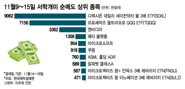서학개미들은 직전 5거래일(11월2~8일)에도 SOXS를 사고 SOXL은 팔면서 반도체주 하락에 투자했다.