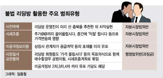 회사 직원이나 대주주, 특수 관계인이 포함된 불법 리딩방의 미공개정보이용 및 시세조종혐의도 눈에 띈다.