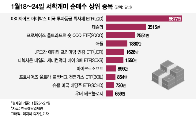 이 채권 펀드는 지난 18~24일 동안 서학개미들의 순매수 상위 1위를 차지한 아이셰어즈 아이박스 미국 투자등급 회사채 ETF(LQD)다.
