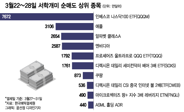 3월22~28일에도 기술주 차익 실현이 계속됐지만 순매도 규모가 직전 주에 비해 대폭 줄며 서학개미들은 미국 증시에서 대규모 매수 우위로 돌아서게 됐다.