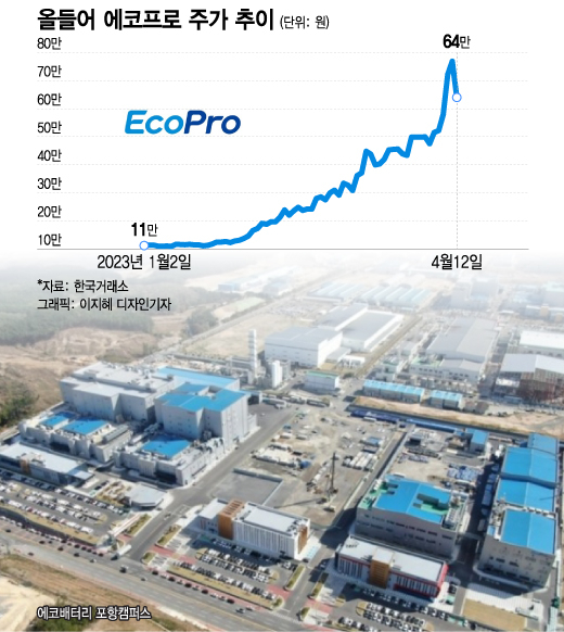 '에코개미운동'으로 대변되는 이차전지 폭등세도 잠시 주춤했다. 에코프로는 올들어 500% 넘게 올랐는데 증권가 안팎에선 단기간 급등한 이차전지 종목들에 대해 당분간 주의하라는 목소리가 나온다.