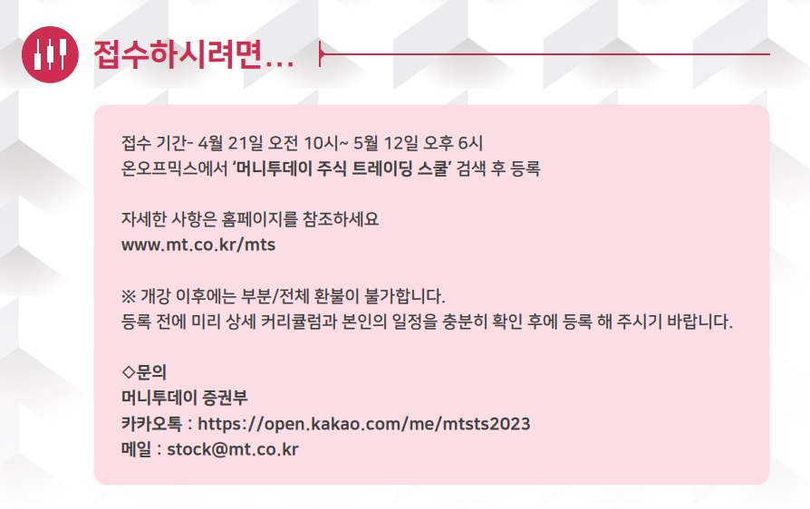 ◇등록 : 온오프믹스에서 '머니투데이' '머니투데이 주식 트레이딩 스쿨' 검색 혹은 ☞등록하러 가기 (시범강의 영상을 볼 수 있습니다)