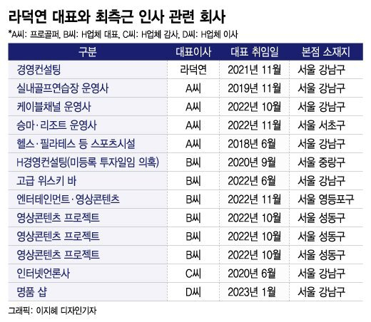 라 대표는 2021년 11월 경영컨설팅업체인 에베레스트파트너스를 세운다. 이 회사는 앞선 두 회사와 달리 투자자문업 신고조차 하지 않았다. 라 대표의 회사들 중 투자자 계좌 운용이 가능한 투자일임업 등록을 마친 사례는 단 한 곳도 없다. 명백한 불법 행위다. 2016년 설립된 호안에프지는 라 대표가 실소유주로 추정되는 핵심 회사다. 그의 최측근들이 대표와 이사, 감사를 맡고 있다.