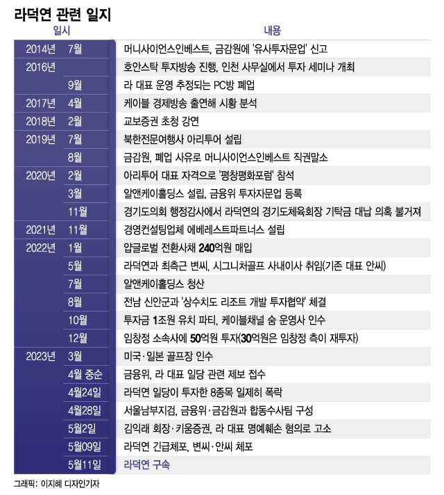 라 대표는 검찰 수사가 진행되는 상황에서도 언론 인터뷰에 적극 나서는 기이한 행보를 보였다. 검찰은 지난 11일 라 대표를 자본시장법(시세조종, 미등록 투자일임업)과 범죄수익은닉법 위반 혐의로 구속했다. 라덕연 일당이 시세조종으로 올린 부당이익은 최소 2640억원, 이들이 수수료 명목으로 편취한 금액은 1320억원으로 추정됐다.