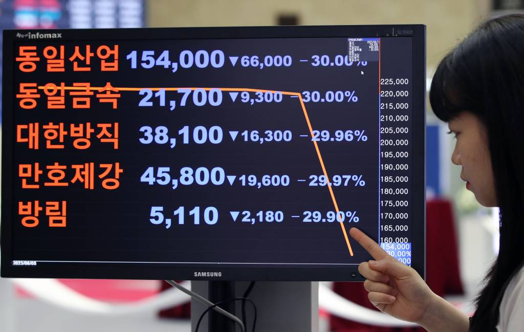 금융당국과 한국거래소는 폭락 당일 5종목(동일산업(38,050원 ▲200 +0.53%), 방림(5,070원 ▲125 +2.53%), 대한방직(6,800원 ▲100 +1.49%), 동일금속(7,190원 ▲170 +2.42%), 만호제강(5,190원 ▲110 +2.17%))의 주식 거래정지를 결정하고, 금융감독원 기획조사국을 중심으로 공동조사에 착수했다. 거래정지 기한은 정하지 않았다. 동일금속과 방림, 만호제강은 소수계좌거래집중 사유로 투자주의 종목으로 지정했다. 일부 투자자들의 대규모 주식 매도가 이뤄졌다는 뜻이다.