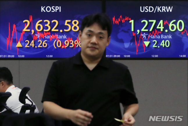 31일 코스피 지수는 전 거래일 대비 24.26포인트(0.93%) 오른 2632.58을 기록했다. 지난 26일 잠깐 2600선을 하회한 뒤 4거래일 만에 2630선을 다시 사수했다. 오후 4시10분 집계기준 개인은 3456억원 순매수했지만 기관과 외국인은 각각 929억원, 2924억원 순매도했다.