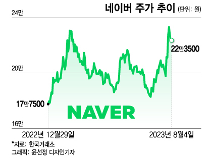리포트가 발간된 지난 1일, 네이버는 올들어 가장 높은 주가인 23만9500원을 터치했습니다. 김 연구원은 네이버가 공개하는 초거대 AI 모델 '하이퍼클포바X'가 주가 상승을 정당화할 수 있는 모멘텀(주가 상승 동력)이라고 설명했습니다. 상세한 분석으로 투자자들의 관심을 끌며 높은 조회수를 기록했습니다.