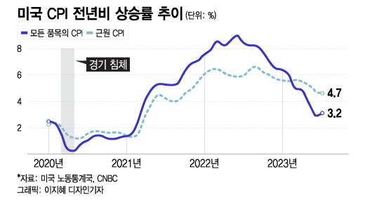 지난 6월 CPI 상승률은 전년 6월 CPI 상승률이 9.1%로 41년 만에 최고치를 기록한 탓에 3.0%로 대폭 낮아졌다. 반면 지난 7월 CPI는 상대적으로 낮아진 전년 7월 CPI와 비교하다 보니 지난 6월보다 반등한 것일 뿐이다.