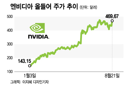 엔비디아는 실적 발표를 2일 앞둔 21일(현지시간) 8.5% 급등한 469.67달러로 마감했다.