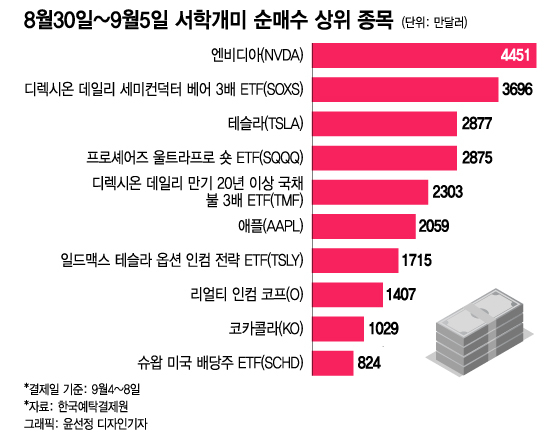 서학개미들이 9월 첫 주 미국 증시에서 2주째 순매수를 이어갔지만 규모는 줄었다.