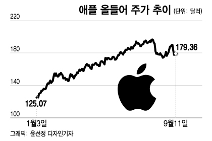 애플은 지난 6~7일 중국 우려로 주가가 6%가량 하락한 뒤 12일 아이폰15 출시 행사를 앞두고 8일과 11일 이틀간 1% 반등했다.