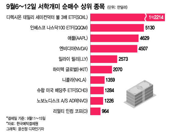 한국예탁결제원에 따르면 서학개미들은 지난 9월6~12일 사이에 미국 증시에서 1억3397만달러를 순매수했다.(결제일 기준 9월11~15일)