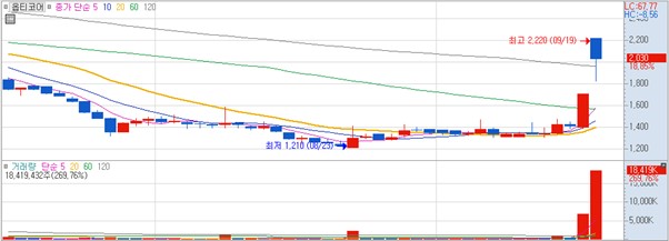 우리기술(22,050원 ▲1,650 +8.09%) 롯데손해보험(2,160원 ▲160 +8%) 센서뷰(3,655원 ▲515 +16.4%) 모비스(4,555원 ▲305 +7.18%) 에이스테크(4,350원 ▲520 +13.58%)