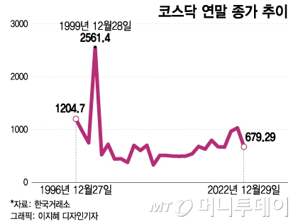 코스닥 시장은 1996년 7월 개장해 지난 7월로 만 27주년이 됐다. 그러나 IT 버블이 걷힌 2000년 이후 코스닥 지수가 기준점인 1000선을 한 번이라도 넘은 것은 2021년과 2022년 뿐이다. 그마저도 시가와 종가가 모두 1000선을 넘는 것은 실패했다.