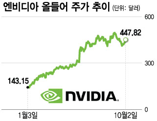 엔비디아는 지난 8월31일 493.55달러로 사상최고치를 경신한 뒤 지난 9월21일 410.17달러로 16.9% 급락했다. 이후 반등하기 시작해 2일(현지시간)에는 447.82달러로 마감하며 저점 대비 9.2% 상승했다.