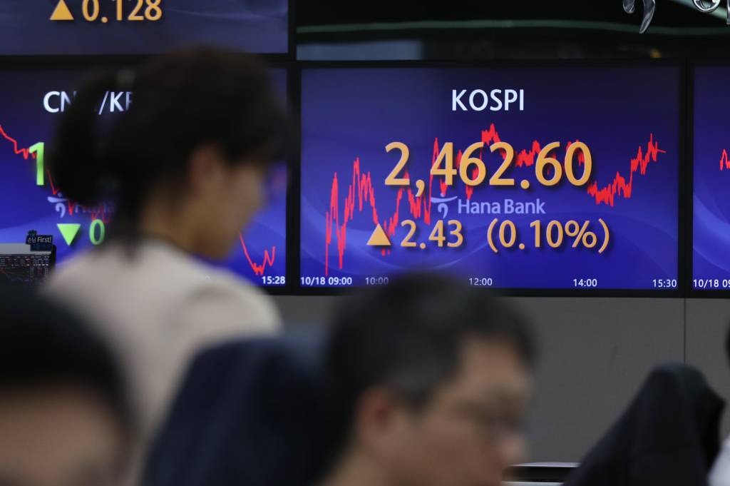 18일 코스피 지수는 전 거래일보다 2.43포인트(0.10%) 오른 2462.60 기록했다. 기관 투자자가 4611억원 팔아치웠지만, 개인과 외국인이 각각 605억원, 4007억원씩 사들이며 지수를 끌어올렸다.
