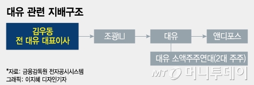주주연대가 경영권 분쟁 당사자로 서면서 대유와 계열사들의 지배구조에도 변동 가능성이 생겼다. 김 전 대표는 2020년 밸브사업체 조광ILI(43원 ▼11 -20.37%),특수비료업체 대유(1,360원 ▲275 +25.35%), 모바일기기용 테이프 업체 앤디포스(2,825원 0%) 등을 차례대로 사들였다. 김 전 대표(28.3%)→조광ILI(22.1%)→대유(22.47%)→앤디포스로 이어지는 지배구조(계열사 등 특수관계인 포함)가 형성돼 있다.
