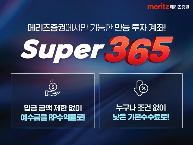 메리츠증권이 리테일 강화를 위해 새롭게 선보인 'Super365 계좌 내 예탁 자산이 2200억원을 돌파했다고 30일 밝혔다. 이자가 높은 파킹통장을 찾는 고객의 수요에 힘입어 예탁 자산이 꾸준히 늘고 있다. 업계에서 실질적인 고객층으로 파악하는 전체 계좌 중 100만원 이상 잔고 계좌의 비율도 40%를 넘어섰다.