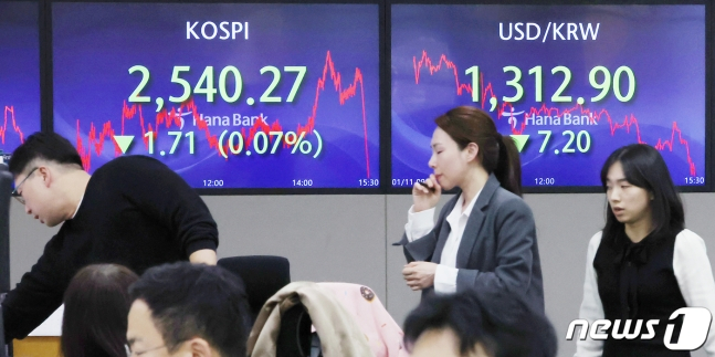 11일 코스피는 전 거래일 대비 1.71포인트(0.07%) 내린 2540.27에 마감했다. 장중 순매수세를 보였던 기관은 순매도세로 돌아섰다. 외국인과 기관은 각각 3774억원, 3483억원 순매도했고, 개인은 7105억원 순매수했다.