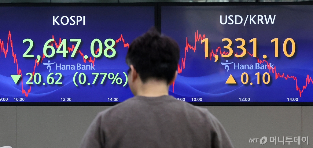 26일 코스피는 전거래일보다 0.77%(20.62포인트) 내린 2647.08로 장을 마쳤다. 장 중 1% 넘게 빠지며 2630선이 깨지기도 했다.