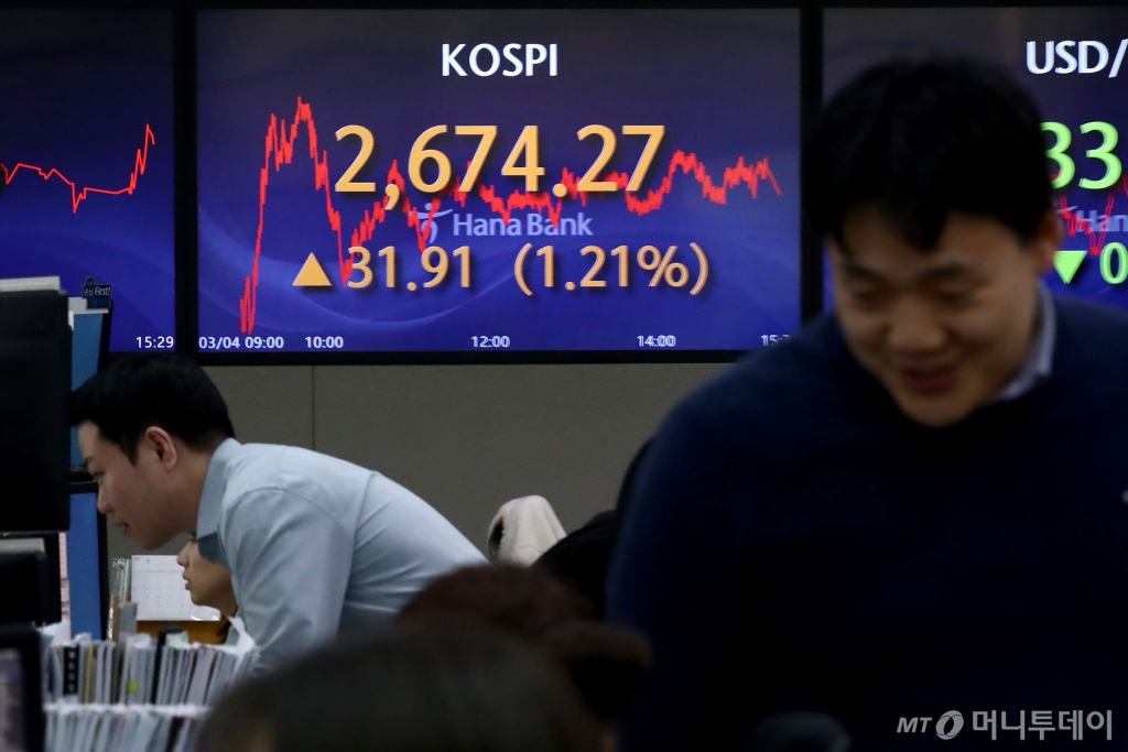 4일 코스피 지수는 전일 대비 31.91포인트(1.21%) 오른 2674.27에 마무리했다. 개인과 기관 투자자가 각각 8737억원, 4341억원씩 팔아 치웠지만, 외국인 투자자가 1조2509억원어치 사들이며 지수를 방어했다.