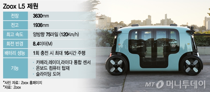 죽스가 개발 중인 완전자율 주행차 L5는 운전석이 없고, 4명의 승객이 2명씩 마주 보는 형태로 설계됐다. 차량 모서리 네 곳에 카메라와 레이더를 탑재해 사각지대를 없앴고, 전 방향 150미터 앞까지 시야를 확보할 수 있어 안전성을 높였다. 구체적 사양은 공개되지 않았으나, 복잡한 계산을 빠르게 할 수 있는 강력한 컴퓨트 시스템도 탑재했다.