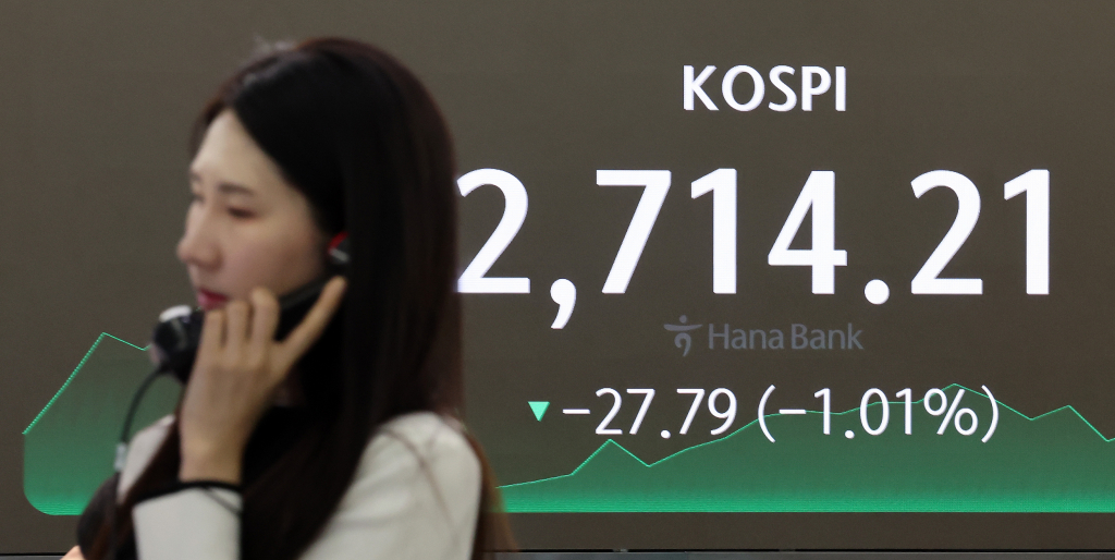 5일 코스피 지수는 전날보다 27.79포인트(1.01%) 내린 2714.21을 기록했다. 오후 3시 35분 집계 기준 개인 투자자는 6158억원어치 사들였다. 반면 외국인과 기관 투자자는 각각 1143억원, 4705억원 팔아치우며 지수 하락을 주도했다.