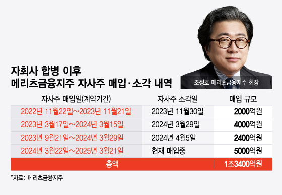 메리츠금융지주는 자회사 합병 이후 1조원이 넘는 규모의 자사주를 매입하고 있다. 메리츠금융지주에 따르면 2022년 11월22일부터 현재까지 1조3400억원 규모의 자사주를 매입하고 있고 그중 8400억원 어치를 이미 소각했다. 자사주 소각은 자기주식을 없애 발행 주식수를 줄이는 걸 뜻하는데 주당순이익(EPS)도 함께 증가하는 효과를 가져온다. 이는 주식시장에 호재로 작용, 주가 상승의 촉매제가 된다.