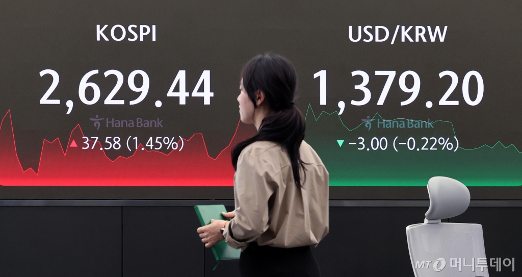 22일 코스피 지수는 전 거래일보다 37.58포인트(1.45%) 오른 2629.44에 마감했다. 이날 오후 4시 기준으로 기관이 7895억원어치를 순매수했고 개인과 외국인이 각각 354억원, 7809억원어치 순매도했다.