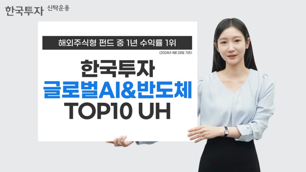 한국투자신탁운용은 한국투자글로벌AI&반도체TOP10 UH 펀드가 해외주식형 공모펀드 가운데 1년 수익률 1위를 기록했다고 29일 밝혔다.