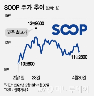 SOOP은 30일 코스닥 시장에서 전일 대비 5500원(4.65%) 하락한 11만2800원에 거래를 마쳤다. 아프리카TV는 지난달 29일 SOOP으로 사명을 변경했다. 지난 23일에는 주식 종목명도 같은 이름으로 변경 상장했다.